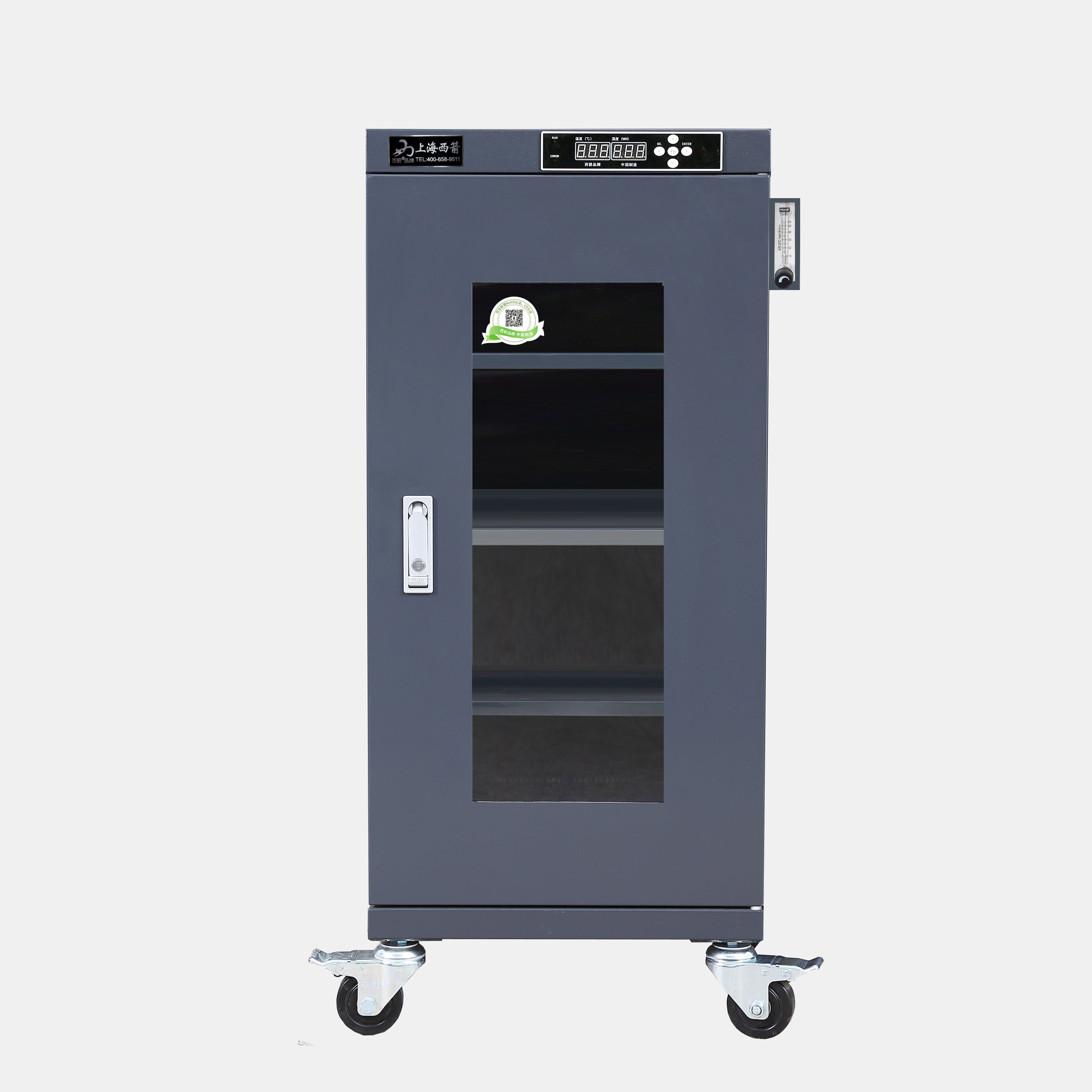 全系列產品可以選配加裝智能溫濕感應式報警系統,通過WIFI、GPRS通訊模塊與手機實時聯網,箱內溫濕度手機實時收到警報信息,通過電腦查看防潮箱溫濕報表。也可選配RS232或者USB串口與計算機連接,記錄溫濕度曲線數據變化。電子防潮箱可用于濕度敏感類材料的防潮保管,如IC等濕度特別敏感的材料存放,可選購防靜電,*銹鋼制作。防潮箱箱體保修五年,*生免費提供技術咨詢,并且可以根據客戶要求量身定制。